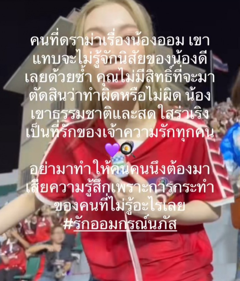 “ออมก็เป็นแบบนี้มาตลอด คนที่รู้จักเธอจริงๆ จะเข้าใจ” และ “เป็นโมเมนต์น่ารักๆ ในงานเท่านั้น” คือเสียงจากแฟนคลับที่ออกมาสนับสนุนเธออย่างต่อเนื่อง
