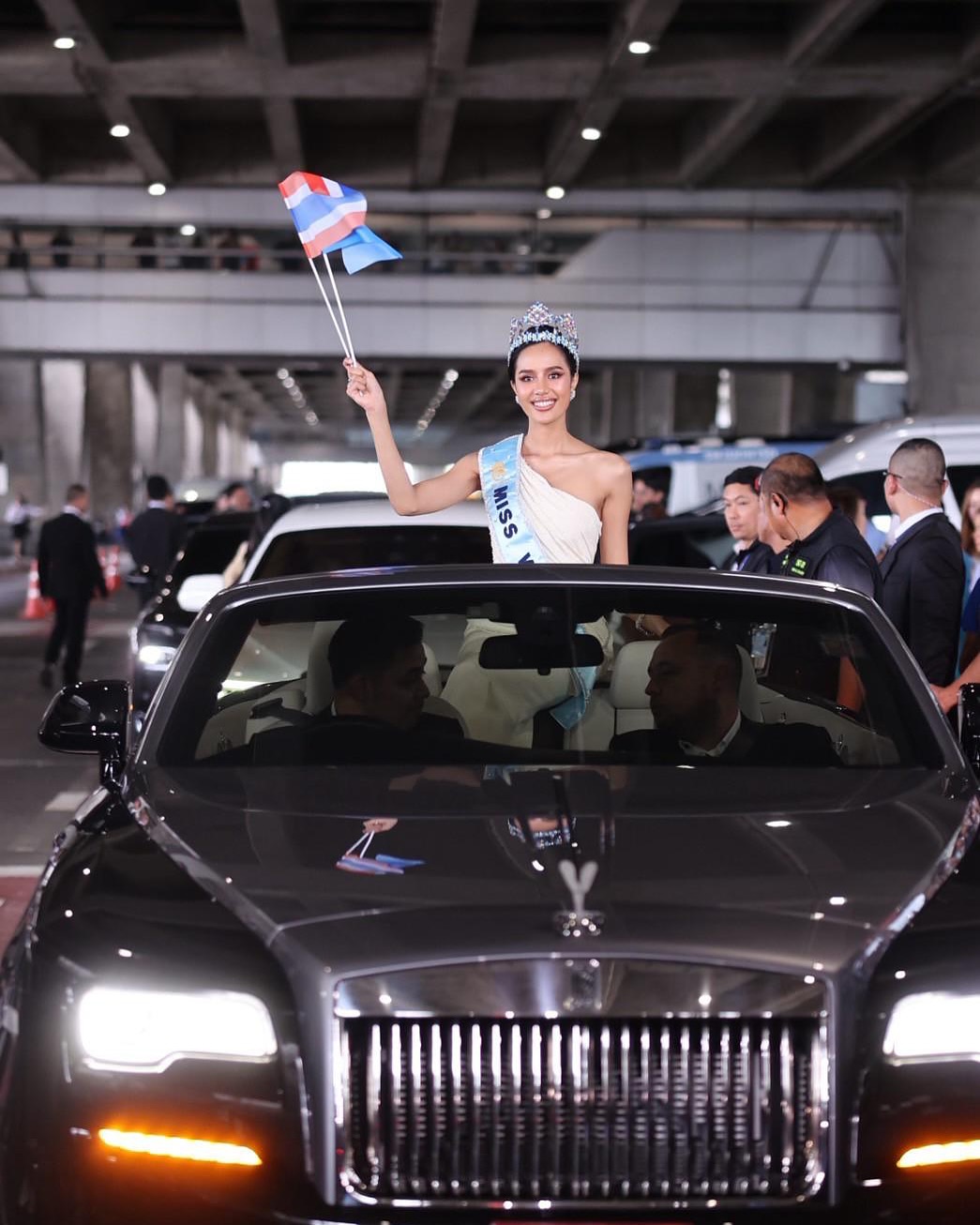 โอปอล สุชาตา มิสเวิลด์ 2025 นั่นก็คือ รถโรลส์-รอยซ์ (Rolls-Royce) เปิดประทุน ป้ายแดง หมายเลขทะเบียน ร-8131 กรุงเทพมหานคร