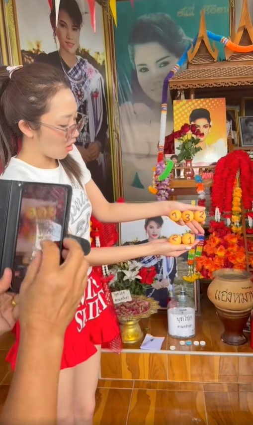หลังจากกราบไหว้ แอนยังได้ร่วมจับปิงปองเสี่ยงโชค ได้เลข 732 และ 21 ซึ่งผู้ดูแลศาลเผยว่า เลข 21 คืออายุของแม่ฮันนี่ในวันที่เสียชีวิต ส่วนเลข 32 ตรงกับจำนวนปีที่แม่ฮันนี่จากไปพอดี ทำให้บรรยากาศในทีมงานเต็มไปด้วยความตื่นเต้นและความศรัทธา