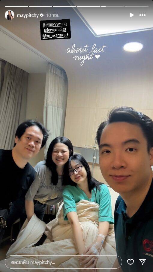 เจ้าตัวโพสต์แจ้งอาการป่วยลงในอินสตาแกรมได้ไม่นานเหล่าเพื่อนทั้งในและนอกวงการบันเทิงก็เดินทางไปเข้าเยี่ยมนักแสดงสาวถึงห้องผู้ป่วยกันเลย เพื่อส่งกำลังใจให้ เมย์ พิชญ์นาฏ หายจากอาการป่วยและได้กลับบ้านโดยเร็ว