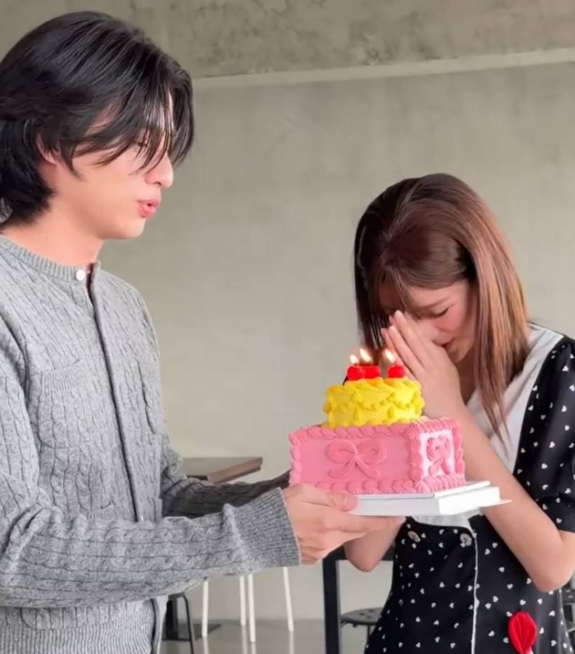 พระเอกดัง หอบเค้กเซอร์ไพรส์วันเกิด ใบเฟิร์น กลางกองถ่าย
