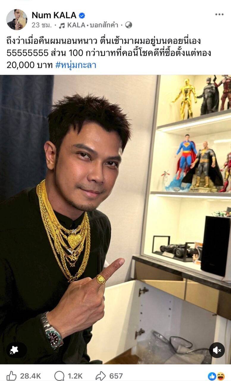 งานนี้เจ้าตัวถึงกับขำไม่ออกแต่ต้องฝืนยิ้มสู้ รีบออกมาโพสต์ระบายความในใจผ่านเฟซบุ๊กแก้เขินด้วยแคปชั่นสุดฮาปนเศร้าว่า “ถึงว่าเมื่อคืนผมนอนหนาว ตื่นเช้ามาผมอยู่บนดอยนี่เอง 555” เรียกว่าติดดอยทองคำแบบเต็มคาราเบล แต่ระดับป๋าแล้วก็ยังไม่วายขิงกลับเบาๆ เพื่อรักษาฟอร์มว่า ไอ้สร้อยเส้นโตหนักอึ้งที่ใส่อยู่ที่คอเนี่ย โชคดีที่ซื้อตุนไว้ตั้งแต่สมัยบาทละ 20,000 แล้ว ถือว่าถัวเฉลี่ยกันไปไม่เจ็บตัวมาก (มั้ง)