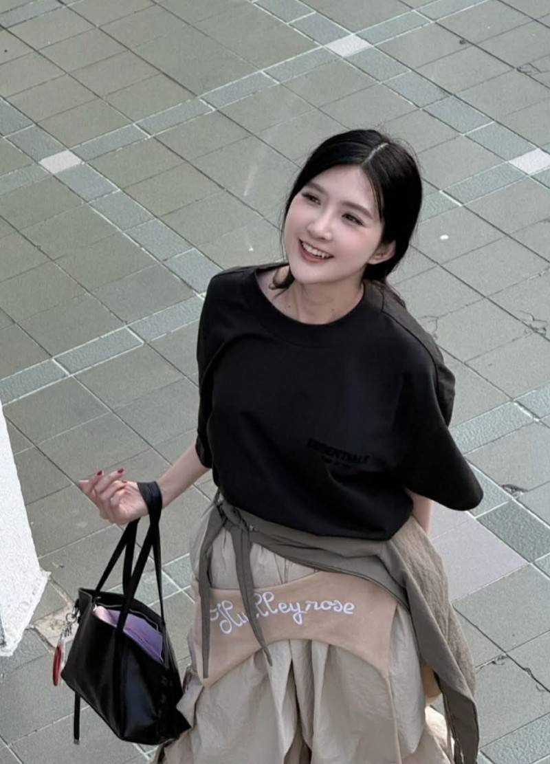 สำหรับลุคที่กำลังเป็นไวรัลนี้ สาวเบียร์ เลือกหยิบแฟชั่นแนวสตรีทโทนสีเข้มมามิกซ์แอนด์แมตช์ได้อย่างลงตัว โดยเน้นความเรียบง่ายแต่แฝงไปด้วยความเท่ ด้วยเสื้อและกระโปรงทรงโอเวอร์ไซส์ที่ดูหลวมสบายตา ไม่เน้นรัดรูปโชว์สัดส่วน ถือเป็นการสไตลิ่งสไตล์ Effortless ที่ดูเหมือนไม่ได้พยายามแต่งอะไรมากมาย แต่กลับขับเสน่ห์ความชิคและความคูลเฉพาะตัวออกมาได้แบบทะลุปรอท