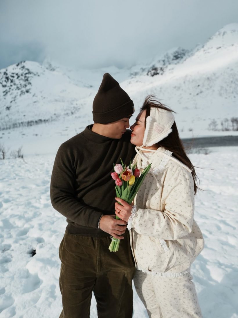 บรรยากาศการขอแต่งงานครั้งนี้เรียกได้ว่าโรแมนติกจนมดขึ้นจอ เพราะหนุ่มคนนี้เลือกโลเคชันสุดพิเศษไกลถึงประเทศนอร์เวย์ ท่ามกลางอุณหภูมิที่หนาวเหน็บและยอดเขาหิมะที่ขาวโพลนราวกับฉากในฝัน เขาได้ทำเซอร์ไพรส์ครั้งใหญ่ด้วยการคุกเข่าขอแฟนสาวแต่งงาน เป็นวินาทีที่ความหนาวเย็นของอากาศพ่ายแพ้ให้กับไออุ่นแห่งความรัก เมื่อฝ่ายหญิงเซย์เยสตอบตกลงท่ามกลางพยานรักเป็นธรรมชาติที่ยิ่งใหญ่ กลายเป็นภาพจำสุดประทับใจที่ใครเห็นก็ต้องเข้ามาร่วมแสดงความยินดีในความหวานที่จัดเต็มแบบไม่เกรงใจคนโสด