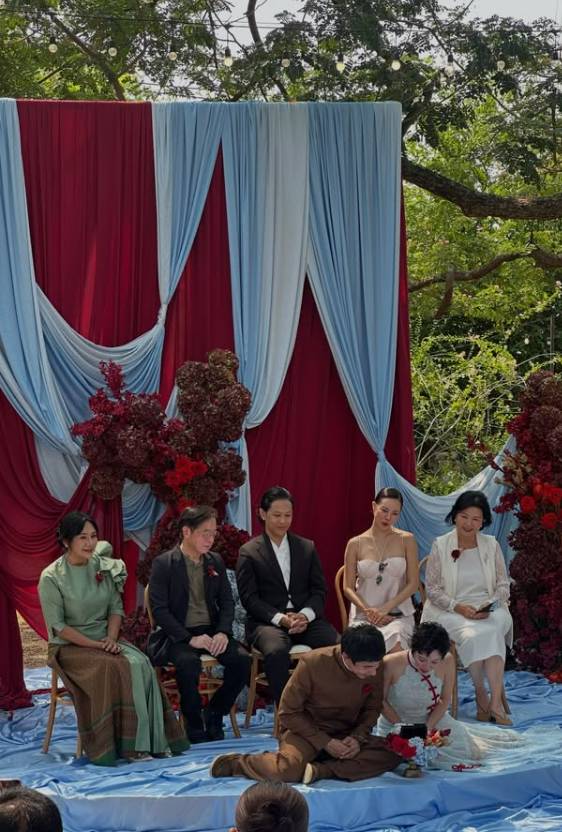ภายในงานบอกเลยว่ารายล้อมไปด้วยความรักจากคนสนิทจริงๆ โดยฝั่งเจ้าสาวมีพี่สาวสุดสวยอย่าง “คริส หอวัง” มานั่งเป็นผู้ใหญ่คนสำคัญเคียงข้างคุณแม่ เพื่อส่งตัวน้องสาวเข้าสู่ประตูวิวาห์ด้วยรอยยิ้มและคราบน้ำตาแห่งความยินดี เป็นภาพครอบครัวที่ดูแล้วซึ้งกินใจสุดๆ ชนิดที่ว่าแขกในงานต่างพากันอมยิ้มให้กับความน่ารักของสองพี่น้องคู่นี้