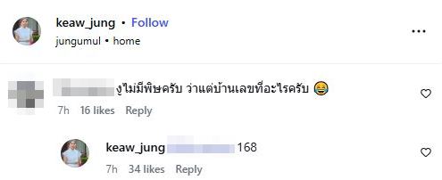 โดยคอมเมนต์หนึ่งที่เรียกเสียงฮือฮาที่สุดคือการถามไปตรงๆ ว่า “งูไม่มีพิษครับ ว่าแต่บ้านเลขที่อะไรครับ” ซึ่งนาทีนี้บอกเลยว่าใครๆ ก็อยากรู้ เพื่อเอาไปเก็งเลขเด็ดลุ้นรวยกันถ้วนหน้า และคนที่ทำให้แฟนๆ ต้องรีบแคปหน้าจอก็คือ คุณแม่แก้ว นั่นเองค่ะ! เพราะท่านได้เข้ามาตอบคอมเมนต์เฉลยบ้านเลขที่แบบเน้นๆ ว่า “168” ซึ่งตามความเชื่อของชาวจีน เลขนี้หมายถึง “รวยทางเดียว” หรือ “รวยตลอดไป” ซะด้วย!