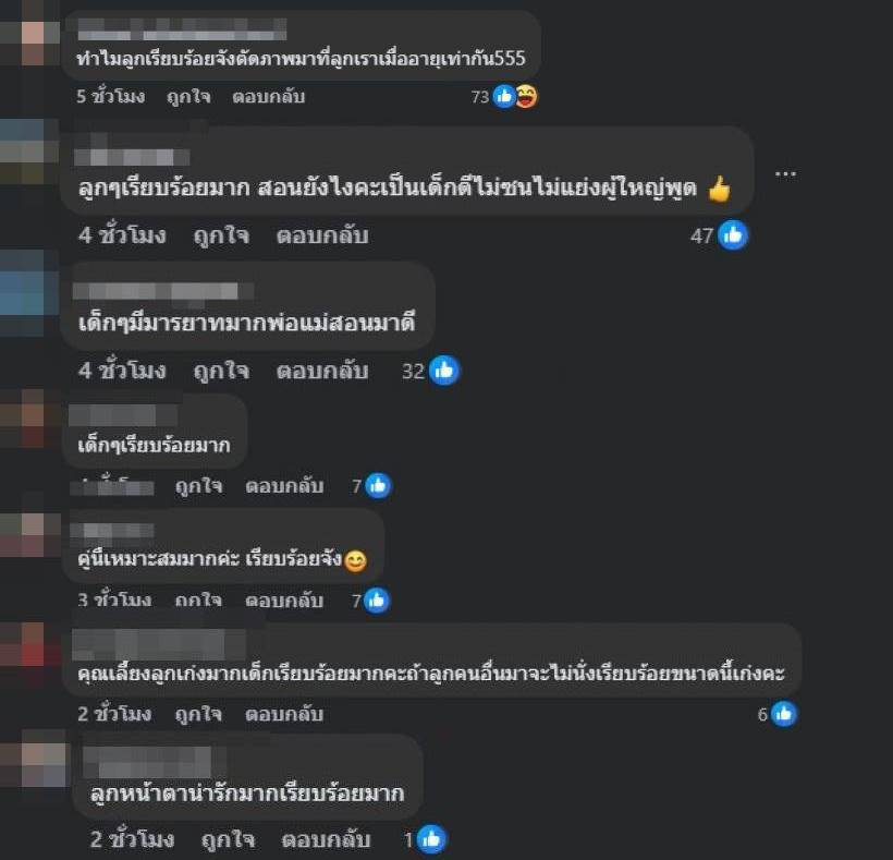 จนพี่ๆ ในสตูดิโอถึงกับออกปากชมไม่ขาดสาย กลายเป็นกระแสชื่นชมสนั่นโซเชียลถึงวิธีการเลี้ยงลูกของบ้านนี้ ตลอดการถ่ายทำรายการสดที่ปกติเด็กวัยนี้มักจะซุกซนตามประสา แต่พี่น้องคู่นี้กลับนั่งนิ่งอย่างเรียบร้อย ไม่มีอาการงอแงหรือลุกลี้ลุกลนให้เห็นเลยสักนิด แถมเวลาตอบคำถามก็น่าเอ็นดูสุดๆ พูดจาไพเราะมีหางเสียงทุกคำ จนคอมเมนต์ในไลฟ์หลั่งไหลเข้ามาอย่างถล่มทลาย บ้างก็บอกว่า