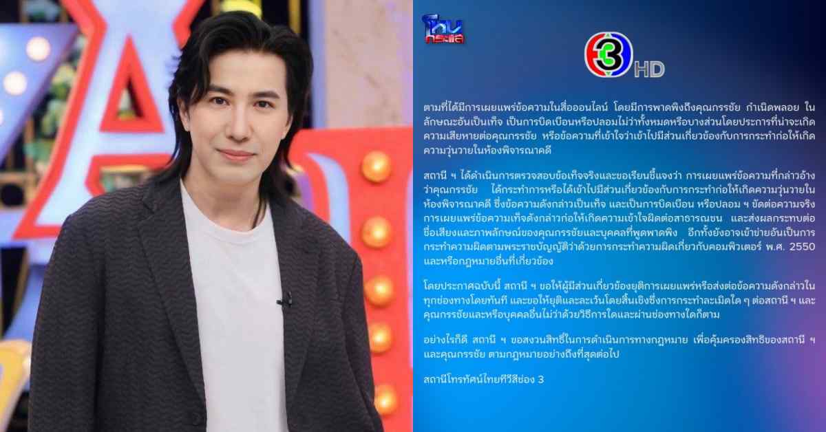 เรื่องถึงหู ช่อง3 สุดทน! ร่อนเเถลงด่วน ปกป้อง หนุ่ม กรรชัย