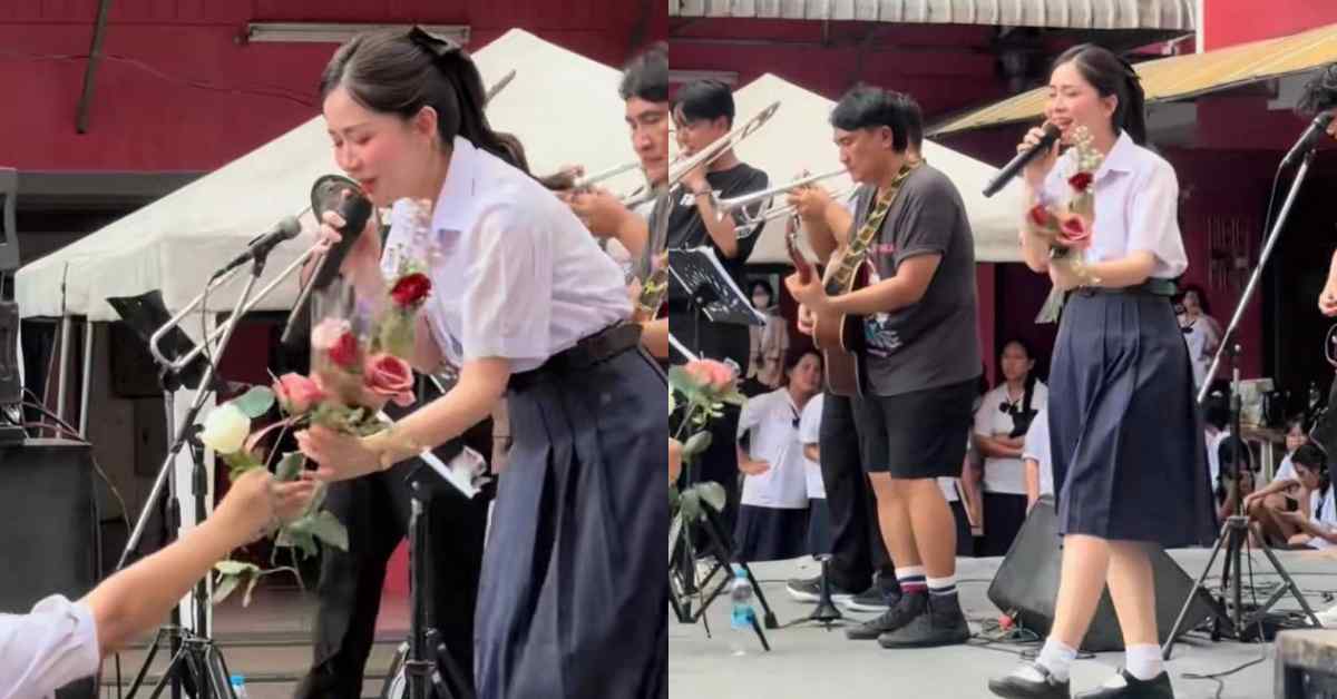 เปิดวาร์ป ผอ.พีช แต่งชุดนักเรียนขึ้นเวทีเซอร์ไพรส์ ร้องเพลงอำลาเด็ก ม.6